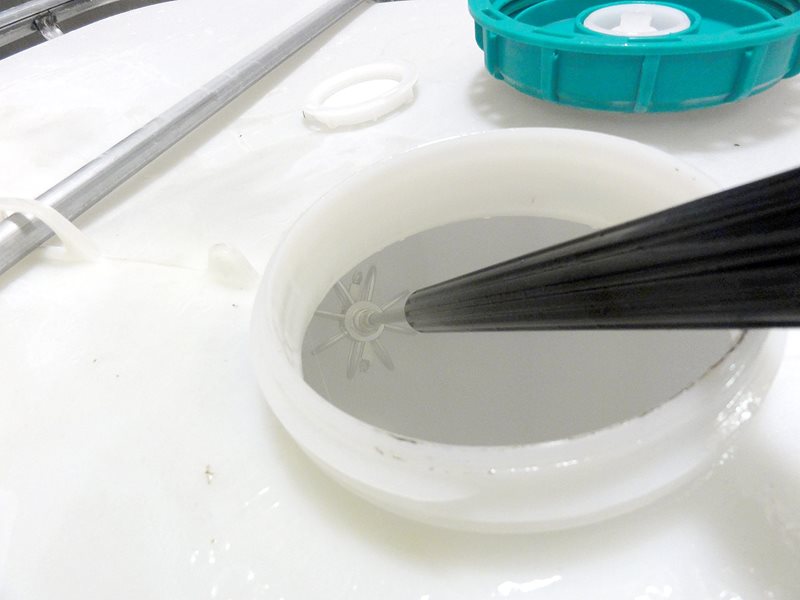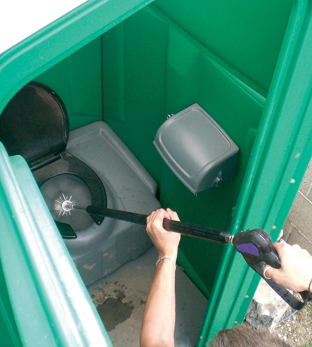 מוט ניקוי שלם עם ראש מסתובב מיועד לניקוי מכלים, פחי אשפה ושירותים ניידים.